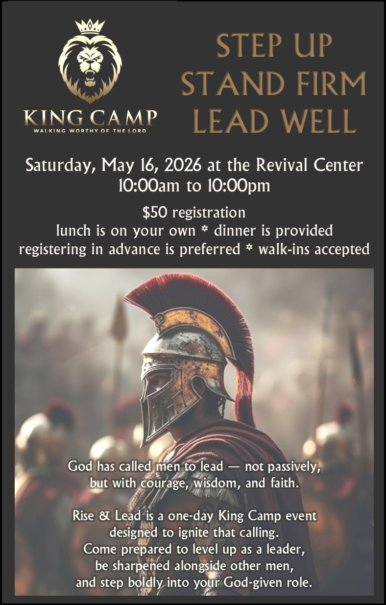 King Camp is an inspired and powerful life-changing experience. The Word of God preached with conviction drives men to accountability as they fellowship with their brothers in Christ. You will be blessed by the amazing fellowship and leave encouraged and refreshed.